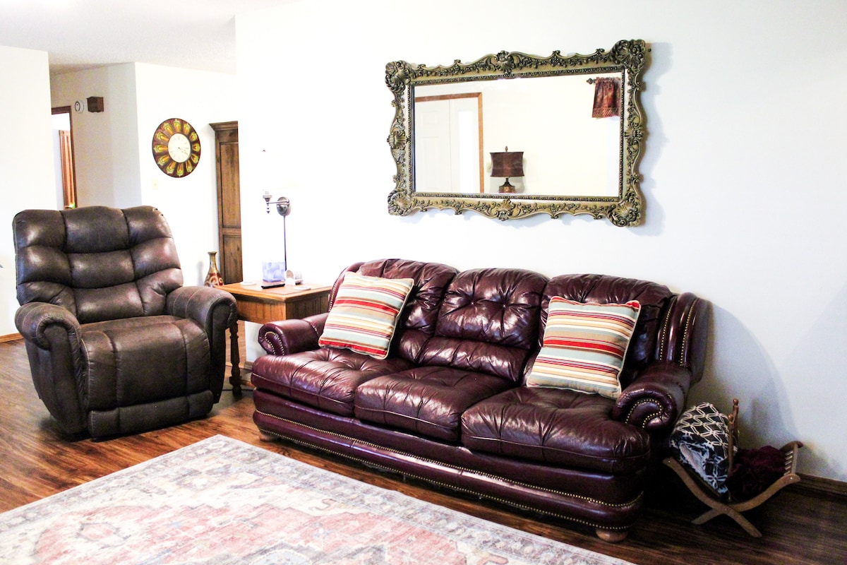 Acogedora casa de huéspedes de un dormitorio con sala, baño, barra de desayuno y zona de estar. Vecindario residencial tranquilo, pero cerca de todo en el centro de McAlester. Consideraremos permitir mascotas a pedido. Envía un mensaje sobre detalles. Ten en cuenta que está estrictamente prohibido fumar. Si se detecta olor a humo durante o después de una estancia, se cobrará una tarifa de $75 para cubrir el costo de una noche perdida para ventilar el Airbnb.