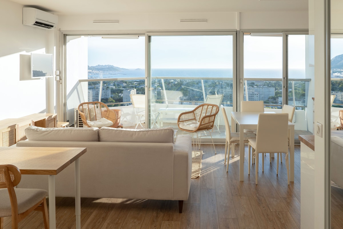 Ubicado en lo alto de la planta baja y con vistas a la bahía de Marsella, este sofisticado y acogedor apartamento estudio de 1 dormitorio en el centro de la ciudad ofrece la mezcla perfecta de comodidad urbana y belleza natural. A medida que avanzan los apartamentos de Marsella, este generoso espacio con aire acondicionado se encuentra en la cima de las opciones de Airbnb en la región, que ofrece luz solar durante todo el día y vistas infinitas al mar y las montañas.