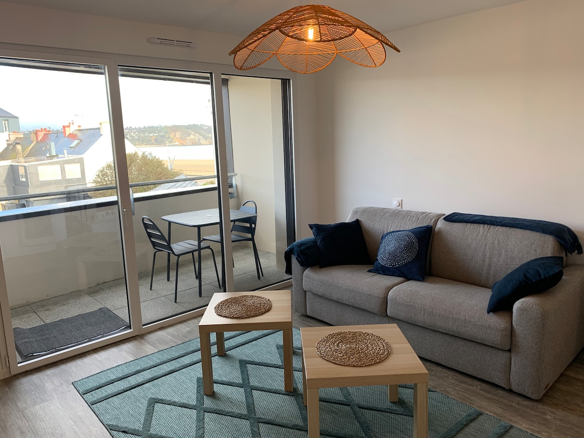 Hermoso alojamiento acogedor, con vista al mar, en el centro de Morgat
