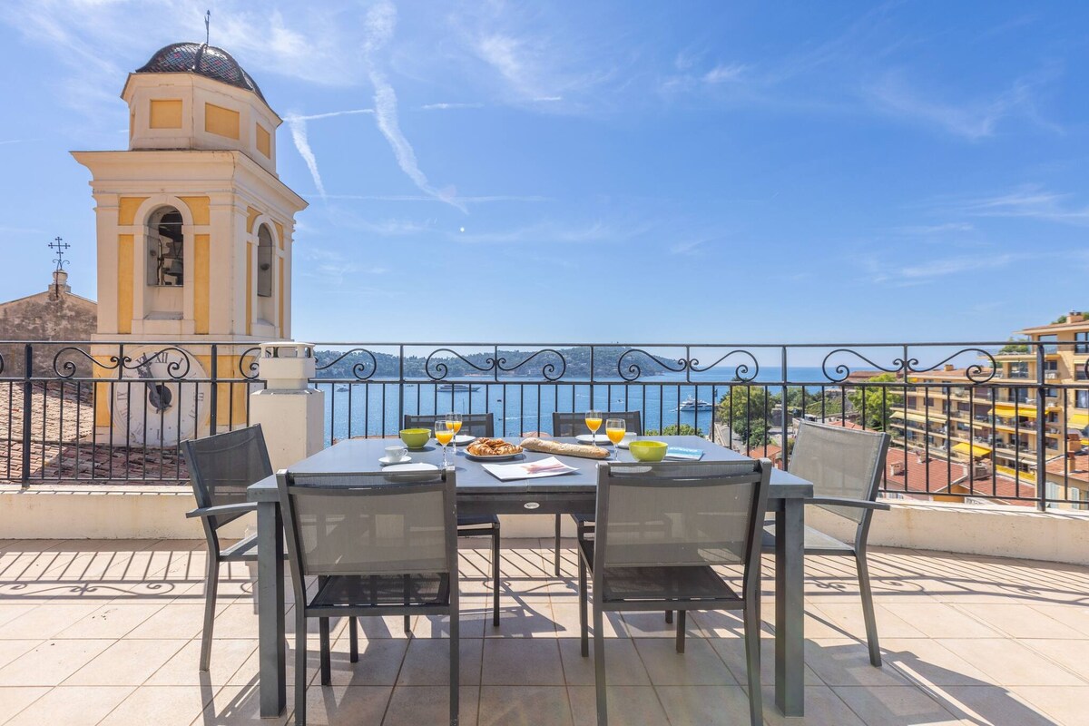 The rooftop flat "LA TERRASSE»: ¡Un lugar único en un maravilloso pueblo típico francés junto al mar! "LA TERRASSE" ofrece una vista panorámica del puerto de Villefranche-sur-Mer, Saint Jean Cap Ferrat, la ciudadela y el antiguo pueblo. LA TERRASSE ha sido totalmente modernizada y renovada, y propone una nueva comodidad de lujo de los equipos y muebles. "LA TERRASSE" está idealmente equipada para dar la bienvenida a 4 a 6 personas. ¡Así que únete a nuestro pequeño paraíso!