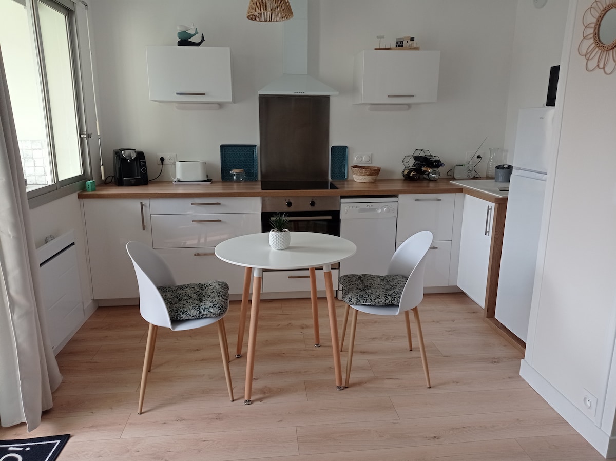 T2 frente al mar, este alojamiento tiene una capacidad para 4 personas (32 m2) y le ofrece una ubicación impresionante en la costa de Saint Palais Sur Mer. idealmente situado, está cerca del centro de la ciudad con todas sus comodidades. Descripción - Jardín cerrado con vistas al mar - Una sala de estar con cama plegable ultracómoda (160 cm) - Zona de comedor, TV de pantalla plana grande wifi - 1 dormitorio con cama (140 cm) - Cocina equipada, cafetera expreso, microondas, lavavajillas, lavadora + aire acondicionado - Cuarto de baño - Aseo independiente