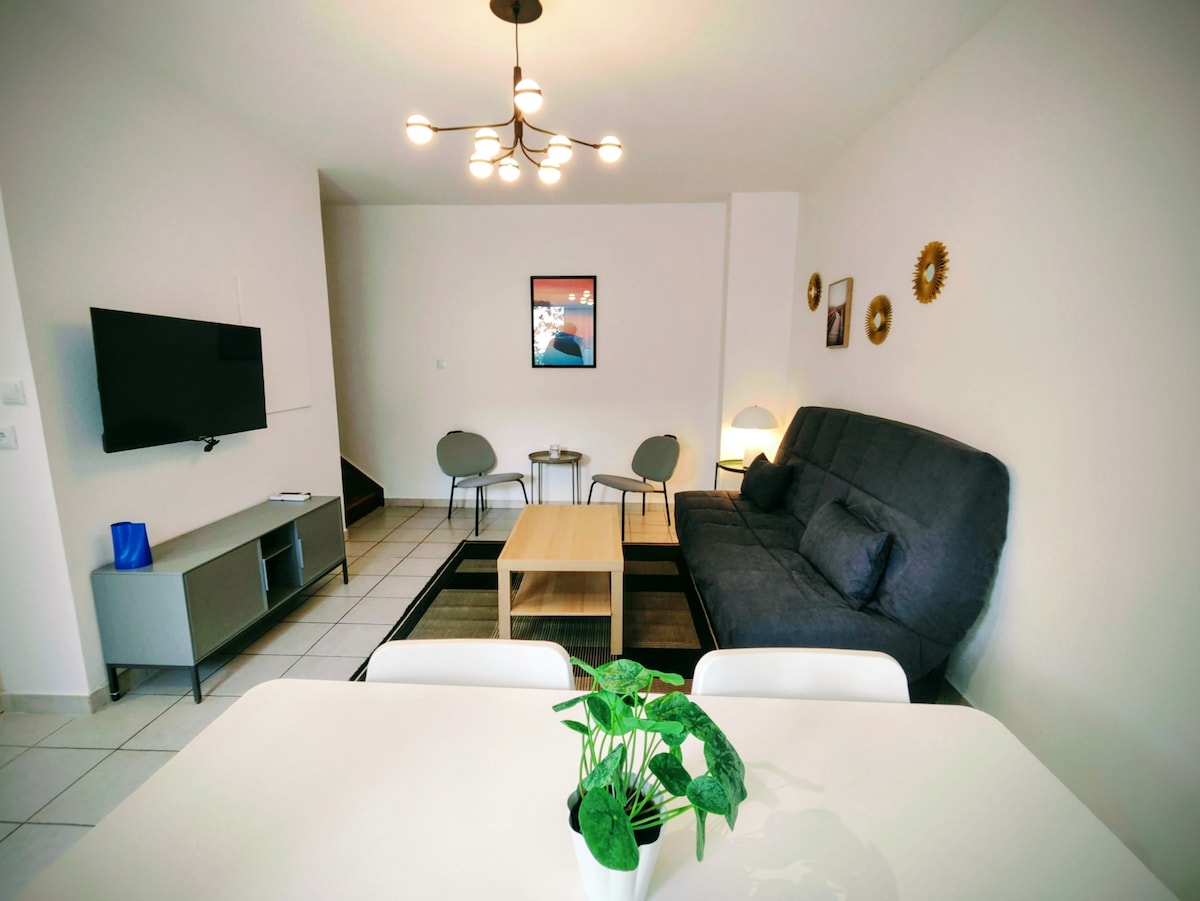 L’Échappée Provençale — superbe duplex décoré par une architecte, avec vue sur la piscine et les collines. Design, confort et calme absolu aux portes pas de Marseille et 20 minutes d'Aix-en-Provence. Cuisine américaine équipée, deux terrasses, climatisation, fibre, parking privé, piscine sécurisée. Un lieu lumineux et raffiné pour 4 personnes, au cœur de la Provence entre ville et nature. Ce logement familial est proche de tous les sites et commodités, marché, pharmacie, etc...