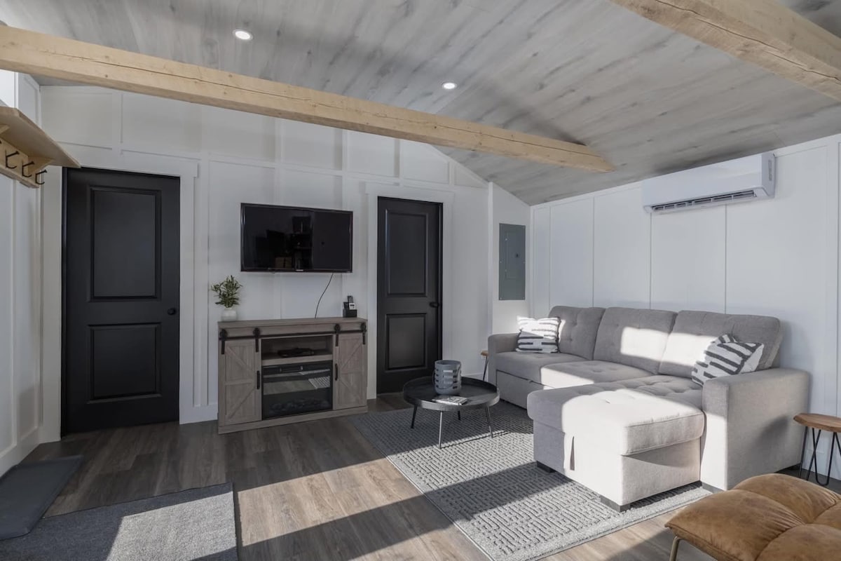 Escápate a The Ridge y relájate en nuestra serena suite de dos dormitorios en el nivel inferior, con entrada privada, estacionamiento y spa al aire libre. Saborea un expreso mientras ves el amanecer desde el jacuzzi o acurrúcate junto a la fogata y sumérgete en la sinfonía natural que te rodea. Nuestro retiro cuidadosamente seleccionado cuenta con una decoración encantadora y muebles recogidos. Las ventanas expansivas inundan el espacio con la luz del sol. Es el santuario perfecto para recargar energías y disfrutar de la tranquilidad del aire libre.