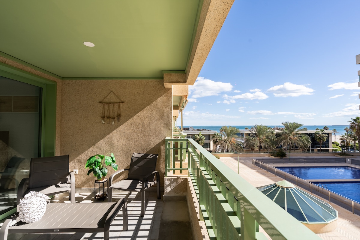 Comfortable, modern and quiet 2 bedroom apartment in premium condo, with privileged location at La Patacona beach. Featuring partial relaxing sea views from the private terrace and all modern comforts : swimming pool, elevator, air conditioning / heating, concierge, Fiber Optic 100 MB WiFi, in a trendy area with lots of nice restaurants & bars nearby and really well communicated with the city centre. Has everything that a couple,or a family would need for a relaxing stay in Valencia's seaside.