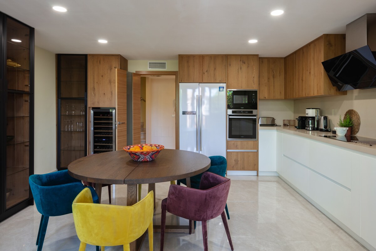 Encantadora casa recién reformada cerca de la playa, con: Tres dormitorios dobles y tres modernos baños completos + un aseo. Cocina completamente equipada con electrodomésticos nuevos. Salón con acceso a dos terrazas: una ideal para desayunos y otra con acceso directo a la piscina y BBQ WiFi de alta velocidad (500Mb) A 3 min de playa de rocas y 5 min playa arenal (ambos a pie) Garaje opcional Urbanización con 3 piscinas, canchas de tenis, pádel y más ¡Reserve y experimente lujo junto al mar!