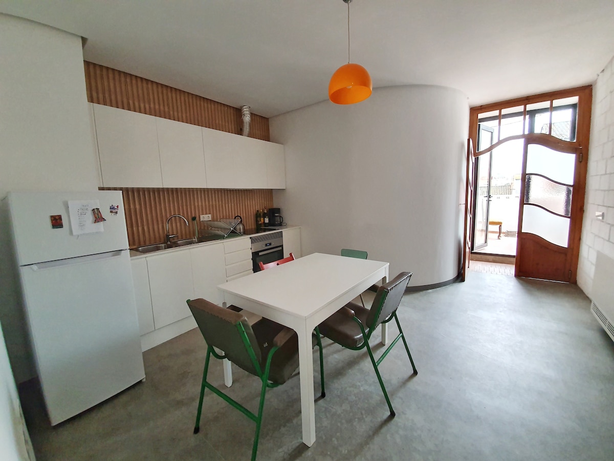Esta es nuestra casa de jubilación, nos gustaría mudarnos aquí en el futuro, pero mientras tanto, esperamos que disfrutes de una estancia maravillosa en el moderno Cabañal de Valencia. La casa es de 1942, la hemos reformado totalmente y la hemos dividido en dos casas, R y M. La casa R se encuentra en el nivel inferior. Al entrar encontrarás el salón-comedor y la cocina, tienen vistas al patio y lo convierten en un lugar estupendo para disfrutar. Hay un calentador en el patio, por lo que puedes disfrutarlo durante todo el año, aunque tenemos muy pocos días fríos en Valencia. Hay una planta superior a la que se accede desde el salón, que tiene tres camas individuales (190 x 90). Hay un pequeño pasillo en el salón que conduce a los dos dormitorios. El primero tiene baño en suite, con ducha, y la cama es de 160 x 200. El segundo dormitorio tiene una cama tamaño queen de 160 x 190. Junto a él se encuentra el baño, que tiene bañera. Al entrar en el edificio hay un pasillo, allí encontrarás un armario donde puedes dejar tus maletas en caso de que necesites llegar antes o salir después de lo establecido. Además, puedes encontrar la secadora y una lavadora. Si necesitas algún servicio especial, no dudes en ponerte en contacto con nosotros. Haremos todo lo posible. La casa se encuentra en el barrio de El Cabañal, un pueblo costero con restaurantes, bares y mercados. Está cerca de la playa y el puerto, y a solo 400 metros de la estación de metro que tiene trenes que van directamente al centro de la ciudad y al aeropuerto.