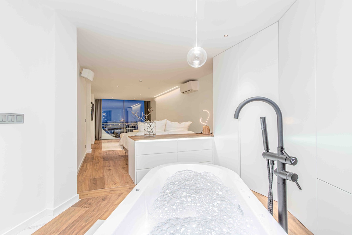 Impresionante estudio superior totalmente equipado con vistas al mar y a la piscina