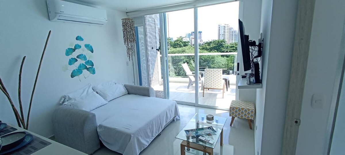 Descubre nuestro nuevo apartamento en el exclusivo sector de Bello Horizonte, Santa Marta. Perfecto para quienes buscan confort y tranquilidad, nuestro espacio ofrece una estancia relajante a unos cuantos pasos de la mejor playa de Santa Marta, Bello Horizonte. ¡Ven y disfruta de una experiencia única y vive unos días frente al mar , el edificio está rodeado de una exuberante vegetación y frente a él, la inmensidad del mar en todo su esplendor!
