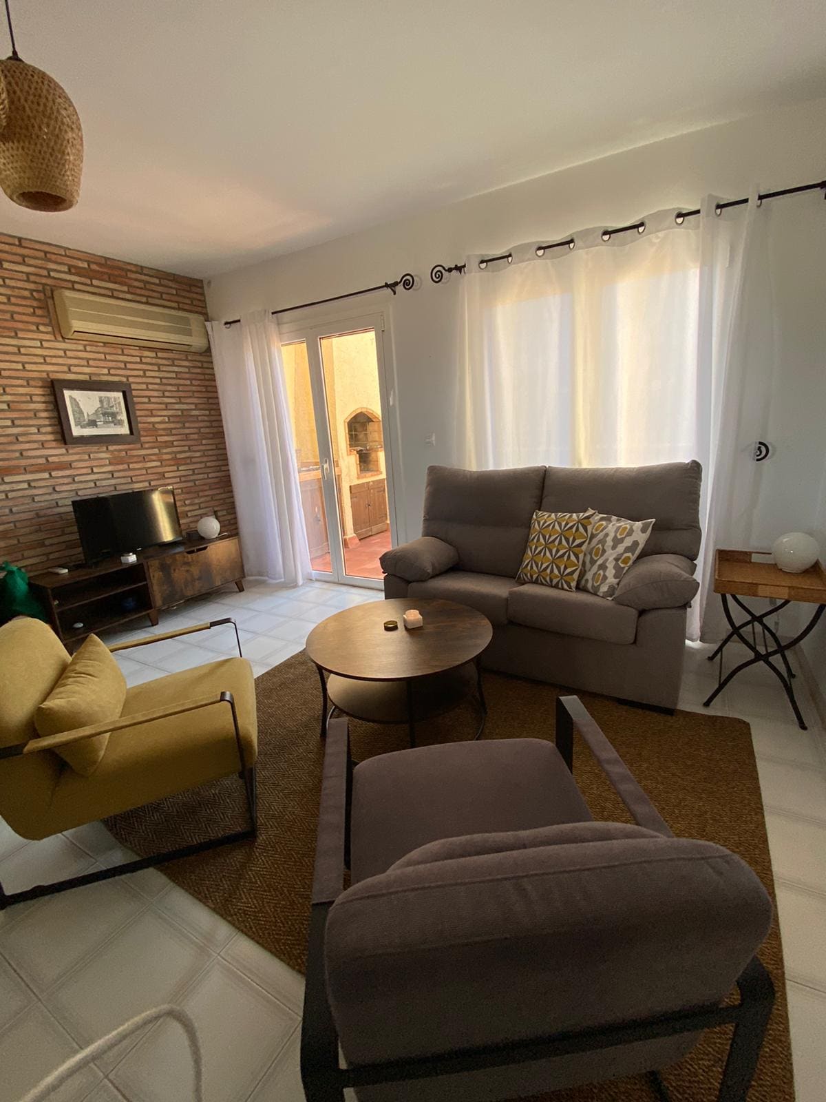 APARTAMENTO CON VISTAS Muy luminoso, con preciosas y relajantes vistas. Está totalmente equipado, con una bonita decoración. terraza con toldos. El apartamento está en un residencial tranquilo y cuidado, perfecto para poder descansar. La playa está a 10 minutos andando . Garrucha está muy cerca Es Ideal para los amantes del golf; de la Naturaleza en estado puro por la cercanía de nuestro maravilloso "Parque Natural Cabo de Gata". Ideal también para estancias largas y Teletrabajar.m