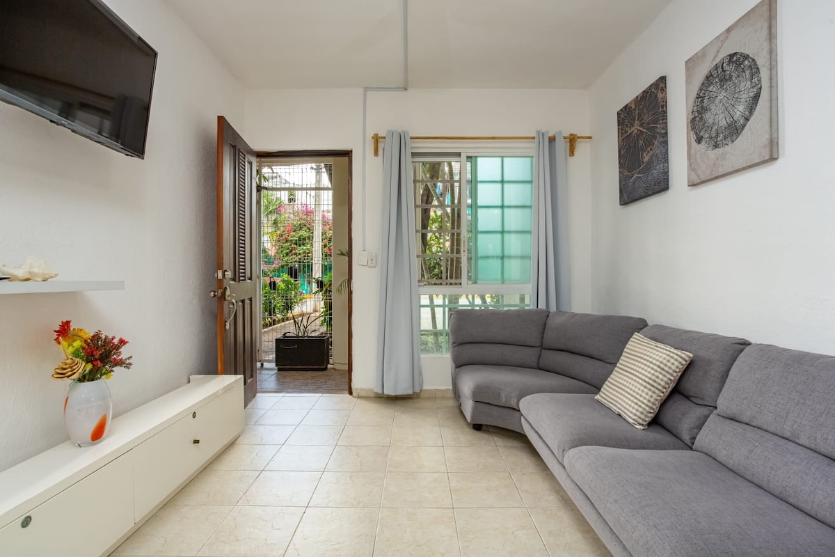 ¡Ubicación privilegiada! A pocos pasos de la Quinta Avenida y la playa + piscina en la azotea A solo 1 minuto a pie de la Quinta Avenida y a 2 cuadras de la playa. Tranquilo, elegante y totalmente equipado: perfecto para vacaciones o para trabajar a distancia en el Caribe. Disfruta de la piscina en la azotea, camina hasta restaurantes, cafeterías y locales de vida nocturna, relájate en la playa con el equipo incluido (sillas, hielera portátil, sombrilla) o explora la impresionante belleza natural de la Riviera Maya. ¡Todo lo que necesitas para una estadía perfecta en Playa del Carmen está aquí mismo!
