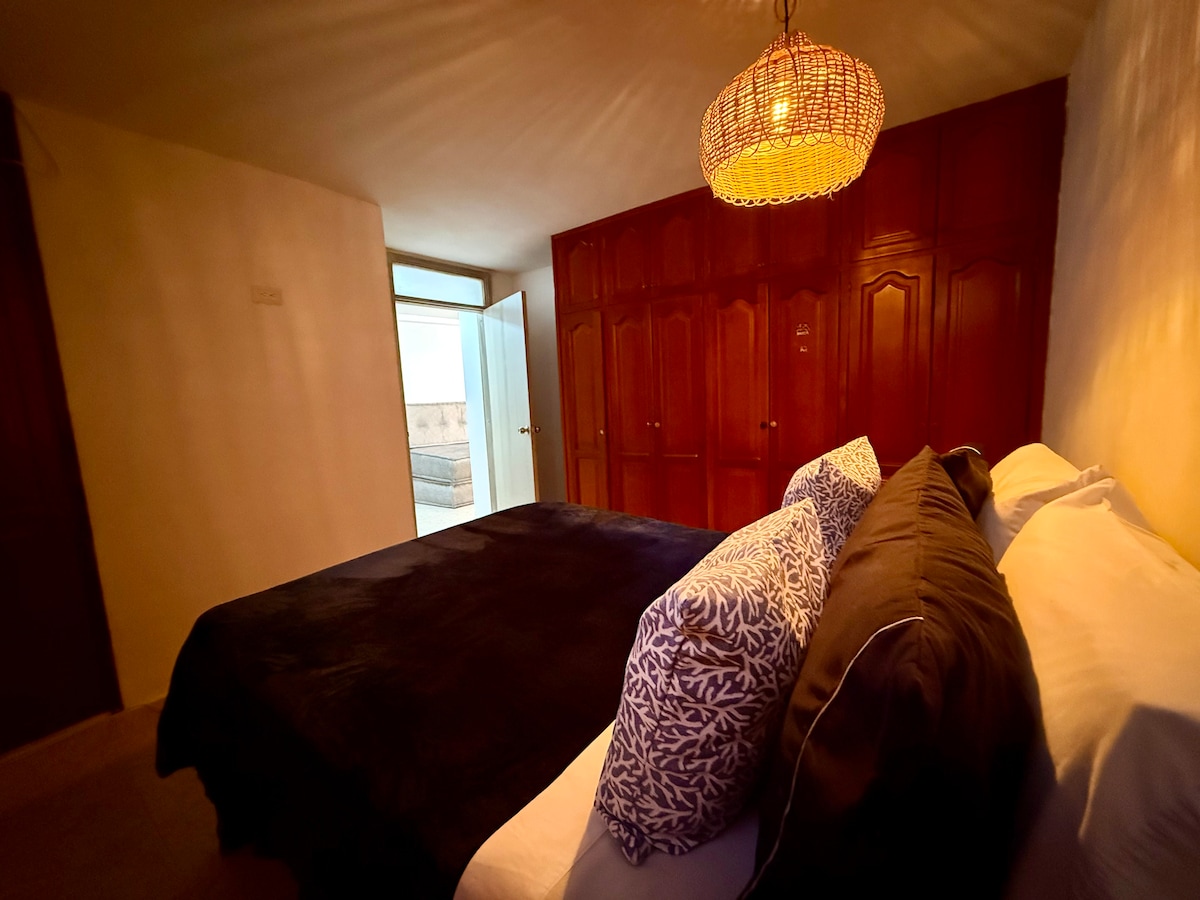 Dpto. frente al mar Ideal para trabajar; adultos mayores; personas con limitaciones. Wifi 200mgs. Hermosa vista. 2 habit. con 1 cama doble, 2 simples, Dpt amplio, comedor, cocina, área lavado/ secado ropa, 2 baños con agua caliente, Balcón amplio, vista lateral al mar y a las sierras. Aerop 15’. Seguridad privada, Camaras. Playa a unos pasos del edificio. En frente hay parquiadero pago por el huésped. Cerca hay de todo. Check in y check out fuera de horario se abona si hay disponibilidad.