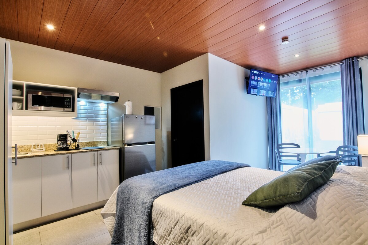 City View by Lava es un monoambiente para vivir San Salvador desde su zona más vibrante. Ubicado en la colonia San Benito, combina diseño funcional y comodidad urbana. Cuenta con cama Queen, sofá grande, cocina equipada, aire acondicionado, clóset, área de trabajo y Smart TV. En el edificio Art Haus tendrás gimnasio, yoga, coworking y terraza. Frente hay supermercado y a pasos Bambú City Center y restaurantes. Ideal para estancias cortas o largas, con estilo, ubicación premium y todo a la mano.