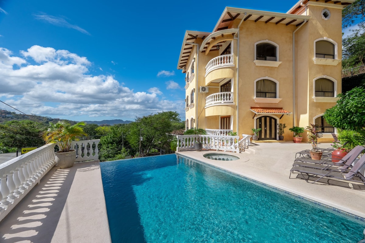 Welcome to "La Casa De Las Vistas", aka "The House of Views". Located high on the Flamingo peninsula, this unique property sports a 180° view of the famous Flamingo Beach, Potrero Bay, and a bird's-eye view of the brand new beautifully constructed Flamingo Marina. Whether it's enjoying a magical sunset from our indoor/outdoor air conditioned balcony or waking up to a beautiful sunrise from your deluxe ocean view bedroom, this property provides a true tranquil experience.