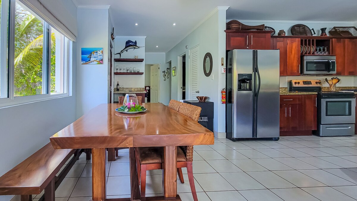 ¡Una de las mejores vistas al mar y a la montaña de Playas del Coco! ¡Damos la bienvenida a todos! Perfecto para parejas, familias y trabajadores remotos. Casa totalmente equipada, ubicada en la cima de una montaña dentro de una comunidad cerrada, a 10 minutos a pie de la playa. Tiendas de comestibles, restaurantes y tiendas cercanas. A poca distancia en coche del aeropuerto de Liberia (20 minutos). Disfruta de un concierto de pájaros y monos cada atardecer y amanecer, espectaculares vistas de las puestas de sol de Playas del Coco. ¡Cerca de la naturaleza, pero no muy lejos de los servicios!