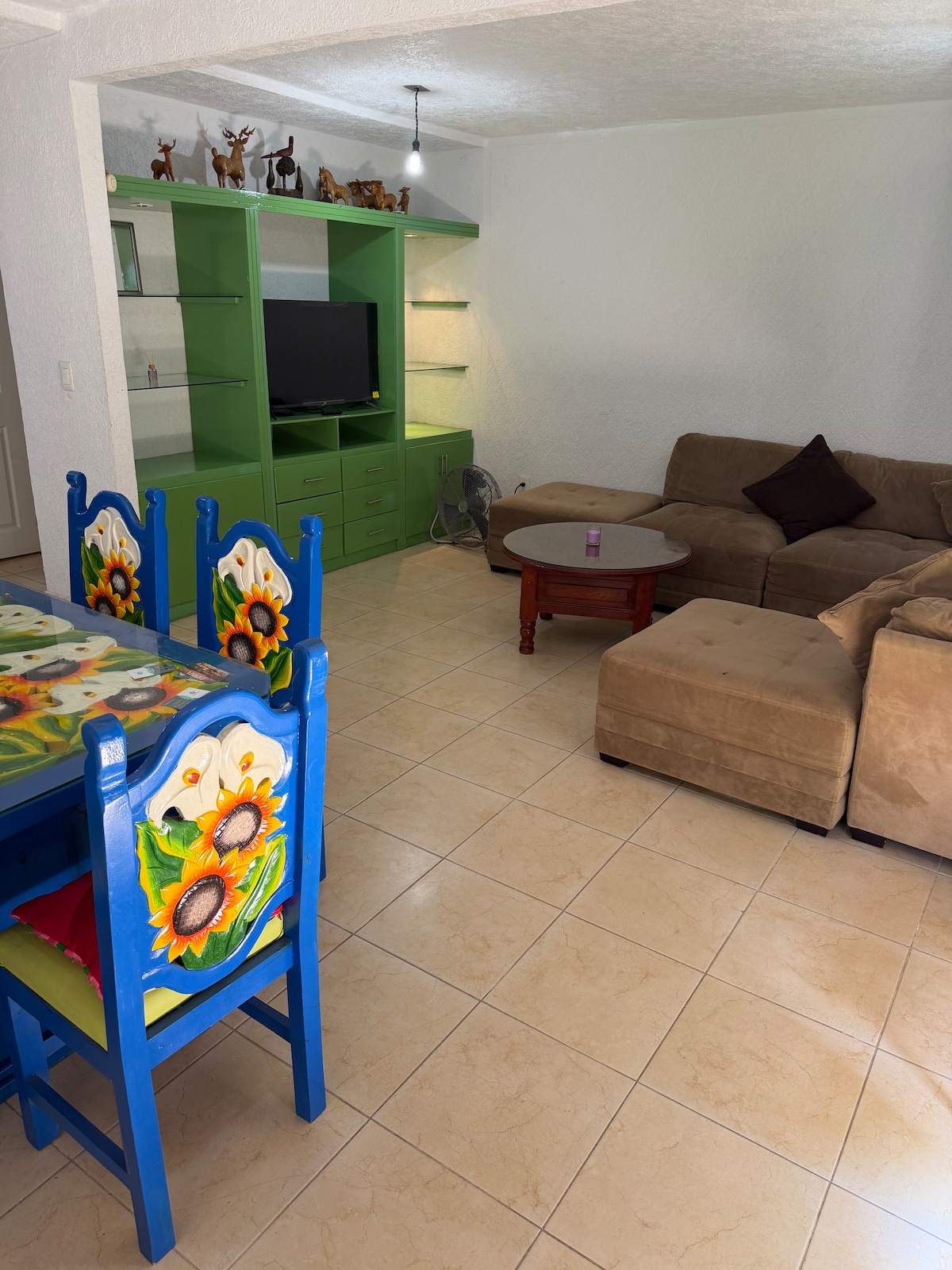 bonito departamento de una recamaran y estancia, servicio de internet, tv, aire acondicionado, cocineta, 1 cama matrimonial y un sofa cama matrimonial ideal para parejas o matrimonios con 2 hijos menores de 12 años perfectamente acomodados o maximo 3 adultos, el lugar se encuentra a 1/2 cuadra de la playa y 5 minutos del centro caminando, a dos pasos de restaurantes cafeterias