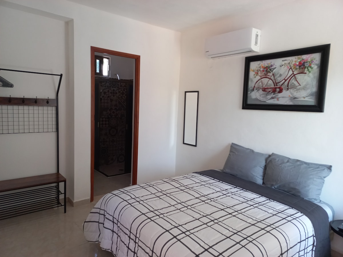 Bienvenido a The Boat House Suites 1: una suite privada limpia y acogedora en el corazón del centro de Cancún. Disfruta de una cómoda cama tamaño queen, baño privado, aire acondicionado, wifi y llegada autónoma. Perfecto para personas que viajan solas o parejas, con una mininevera, microondas, hervidor eléctrico, escritorio y armario para mayor comodidad. Ubicado a pocos pasos de lugares de comida local, tiendas y transporte público. Relájate, recarga energías y explora con facilidad desde esta ubicación tranquila y céntrica. Todos los huéspedes deben enviar una foto de su documento de identidad oficial.