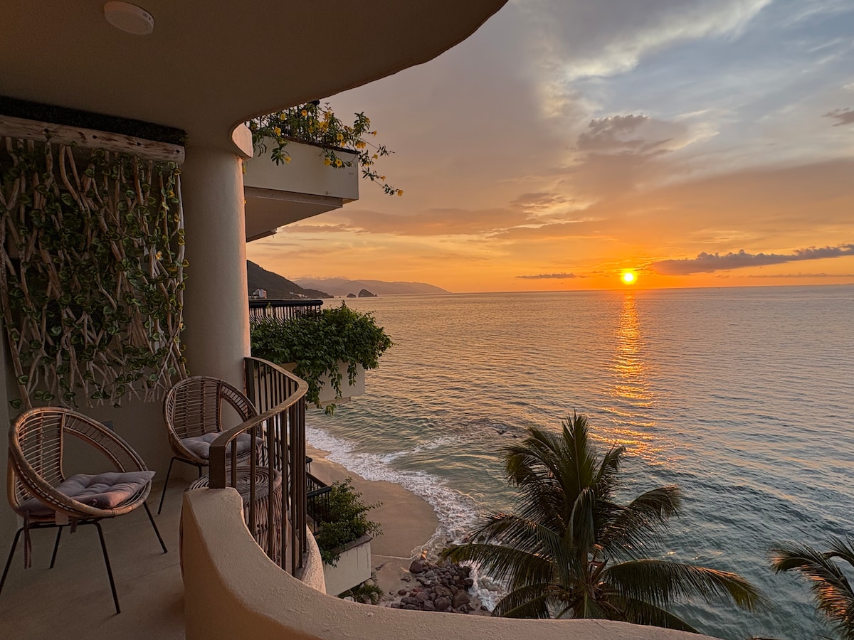 Welcome to Casa Celestial! Hear the waves crash and see the crystal blue ocean from every main room in this traditionally-decorated condo. Watch the fantastic sunsets every night from the private patio. Our building is the only one in Puerto Vallarta where guests can snorkel onsite! The condo has a 1500 square foot, bright & open, villa-like 2-floor layout. Located in the beautiful Conchas Chinas area - the “Beverly Hills” of Puerto Vallarta - it’s close to everything, yet quiet and peaceful.