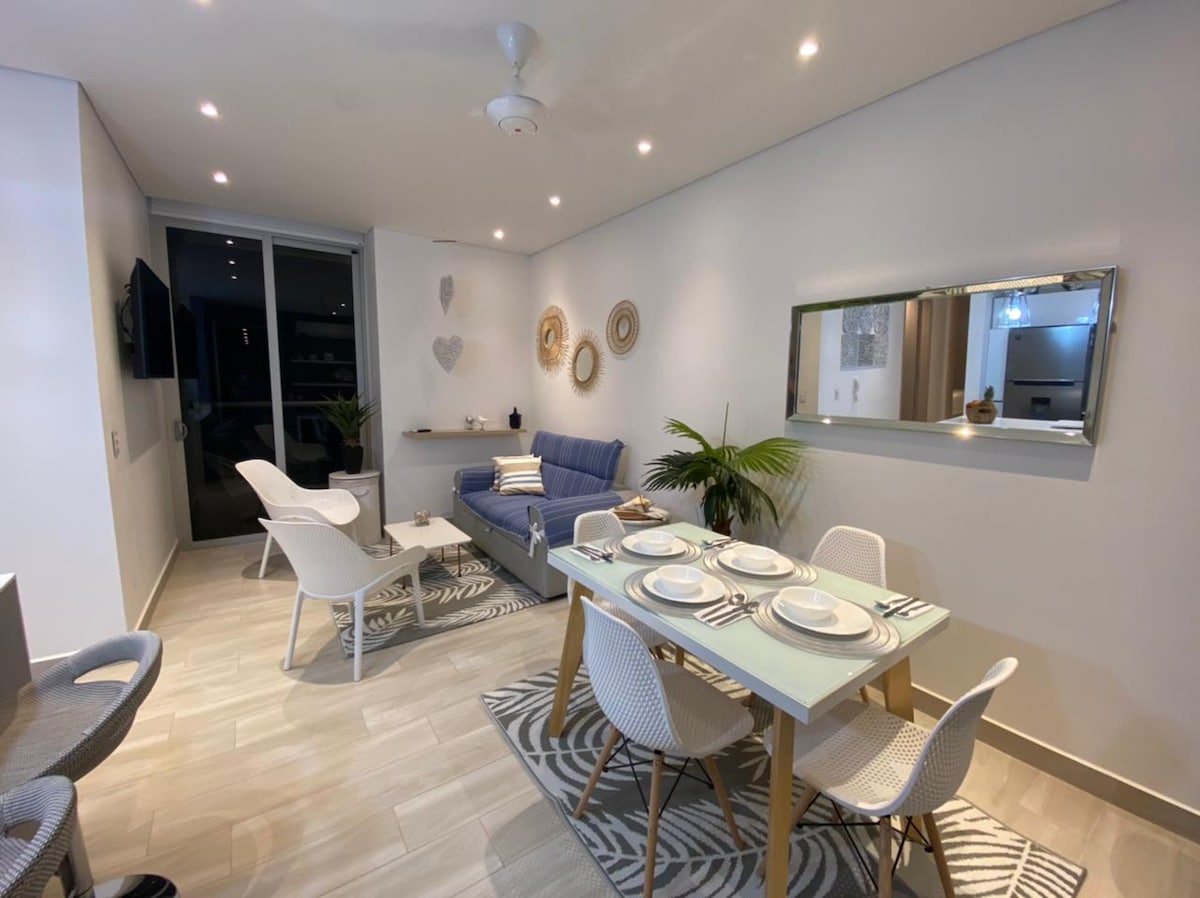 Moderno Apartamento Cerca a la Playa Bienvenido a nuestro elegante apartamento, ubicado a 300m de la playa y a 5 min en auto del Rodadero. Relájate en una cómoda cama Queen, Smart TVs, aire acondicionado y cortinas black out. Sofá cama ofrecen espacio extra, y la cocina totalmente equipada tiene todo lo que necesitas. 🚗 Parqueadero asignado para tu tranquilidad 🏝️ Disfruta la serenidad y explora la ciudad 🛒 Minimarket en el edificio para lo esencial ¡Reserva ahora y disfruta tu estancia!