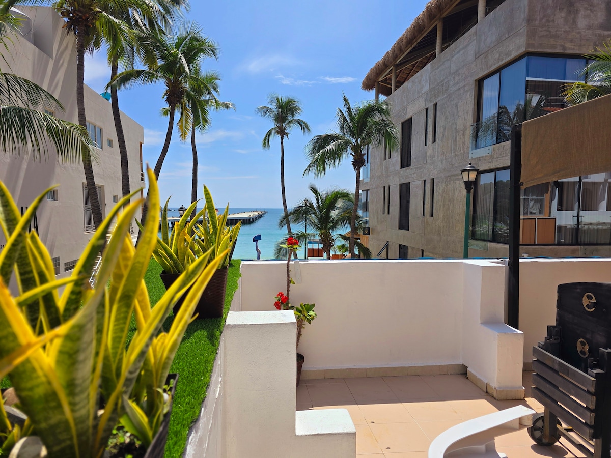Condominio con piscina en la azotea a unos pasos de la playa