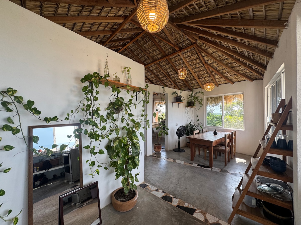 Disfruta de la vista de la bahía desde tu terraza privada o de un hermoso atardecer mientras cocinas, desde tu hamaca o incluso desde la comodidad de tu cama con Aire Acondicionado! Un lugar moderno y minimalista con el toque mexicano. El área de arriba está abierto, excepto por el cuarto. Cuenta con Starlink para asegurarte la conexión a internet, el baño tiene agua caliente, y la cocina está equipada con todo lo necesario. La casa es toda para ti.