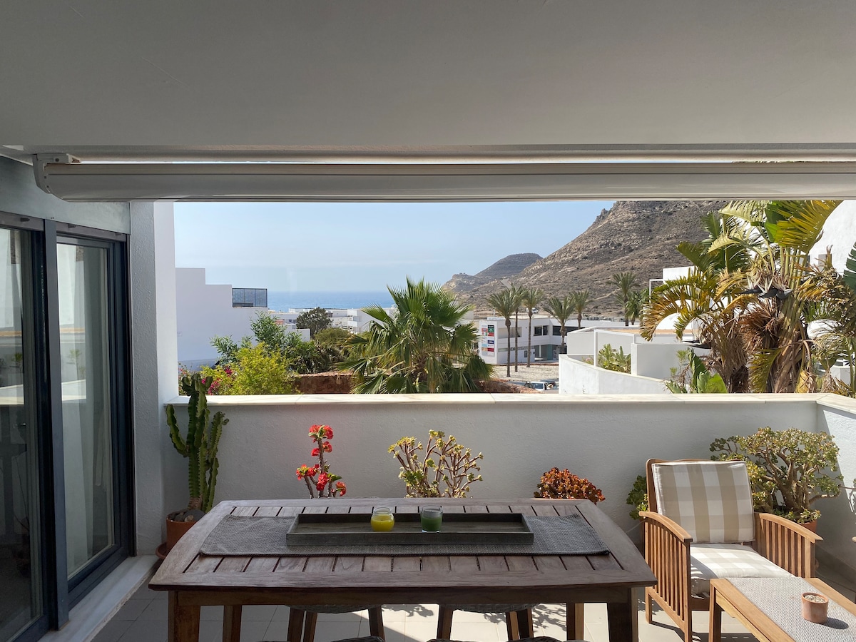 The perfect place to relax and enjoy. The apartment is located on top of a hill and a 5-10 min walk from te beach and the boulevard with all restaurants and bars. The air bnb has a huge terrace (70m2) with a roofed dining area, lounge and a barbecue. The views are spectacular. You will live between the mountains with a fantastic pool- and seaview. Inside we have all equipment and service you need. Mojácar and it's surroundings has a lot to offer.