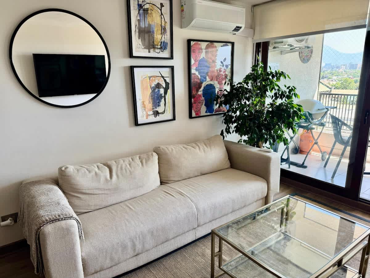 Acogedor y equipado Ñuñoa: AC, parking y metro