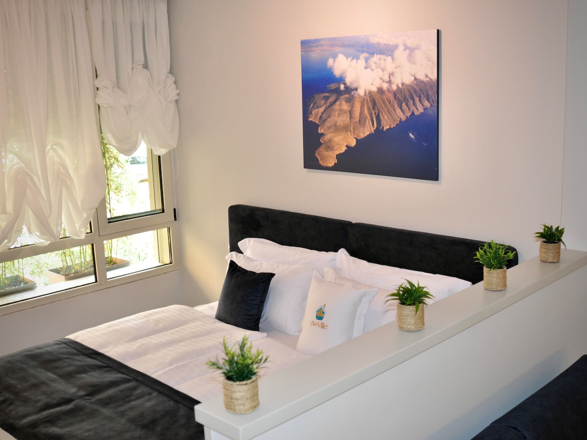 Disfruta de un amplio y elegante apartamento familiar de 95 m² en Golem, a pocos minutos de la playa. Diseñado para la comodidad con 2 baños, 3 unidades de aire acondicionado, TV inteligente, deshumidificador y una acogedora chimenea. El dormitorio principal cuenta con una bañera en la habitación. Una cocina totalmente equipada con parrilla interior y un patio privado con ducha al aire libre lo hacen ideal para familias que buscan estilo, espacio y relajación costera.