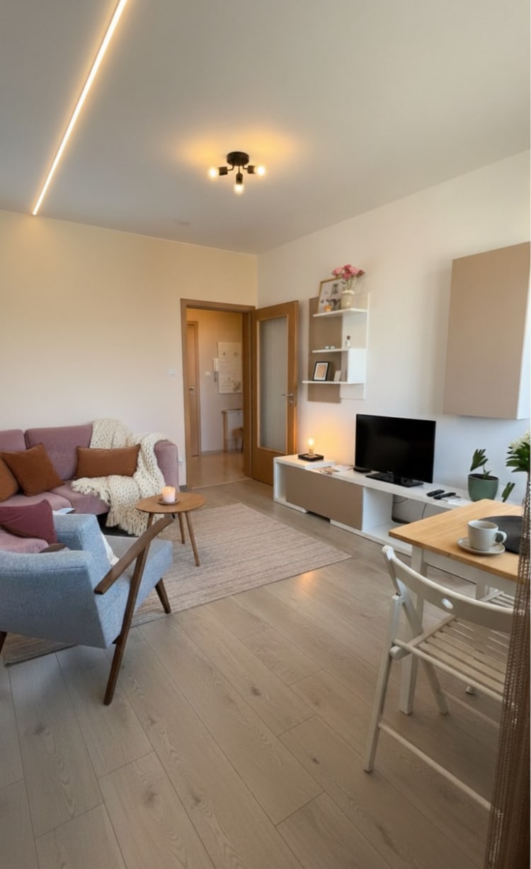 Casa recién reformada con un acogedor estudio. Todo con electrodomésticos y muebles nuevos. Decorada en colores cálidos con atención a cada detalle. La cama es grande y cómoda, ideal tanto para parejas como para viajeros solos. Hay conexión a internet wifi superrápida disponible. La cocina está totalmente equipada con todo lo necesario para una deliciosa cena casera. La televisión tiene numerosos canales si tienes ganas de ver una película o escuchar música.