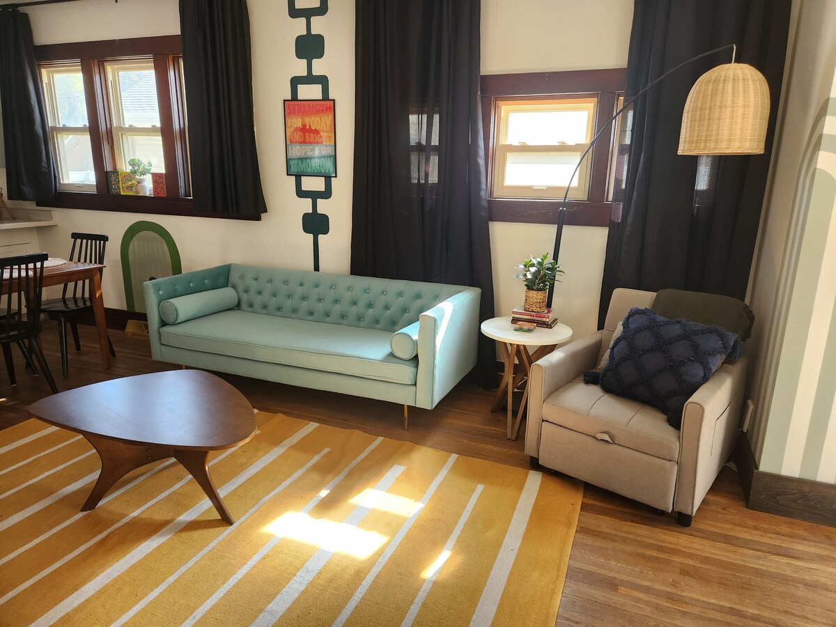 Pasa tu estadía en un poco de historia en The Block. Construido en 1911 por John Groth, este apartamento estudio tiene elementos de la fábrica original de John Deere y más tarde de Ford, incluidos los pisos de madera originales, la pared de ladrillo y los techos altos. La mayoría de los muebles se componen de madera recuperada del ascensor desmontado. Las fotos históricas del edificio están en todos los pasillos comunes para un viaje en el tiempo.