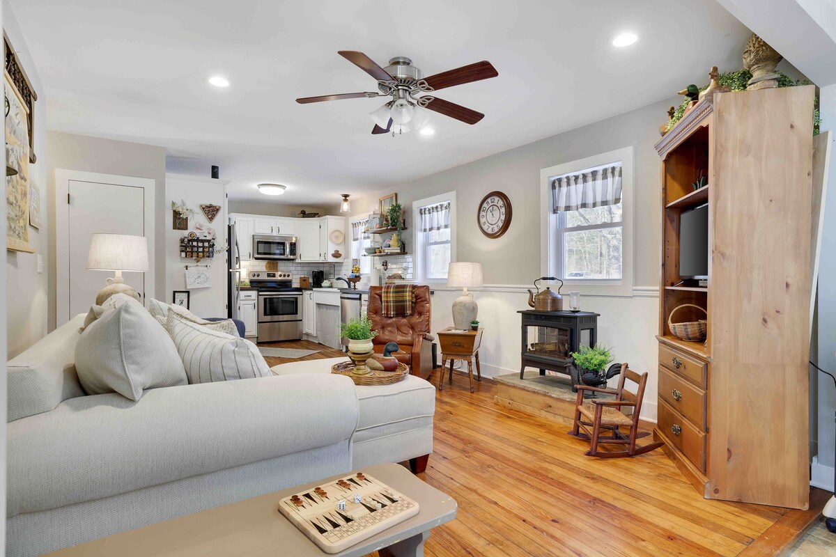 Escápate a esta encantadora casa de campo de estilo escandinavo enclavada en 2,2 acres de tierra prístina, que ofrece un refugio sereno que es a la vez acogedor y encantador. Con 2 dormitorios y 3 camas acogedoras, junto con un baño completo adornado con toques atentos, esta casa de campo es un remanso de comodidad. Cerca: Mount Airy Casino, Camelback Resort, Kalahari Resort, Crossings Premium Outlets, Woodland Trail - Mount Airy Trail, Mount Airy Red Rock Bike Trail. Ven a caminar, esquiar, comprar, disfrutar de nuestras joyas locales.