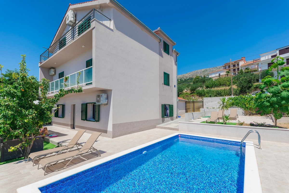 Lujoso y espacioso espacio familiar en villa con piscina cerca de Split y de la playa