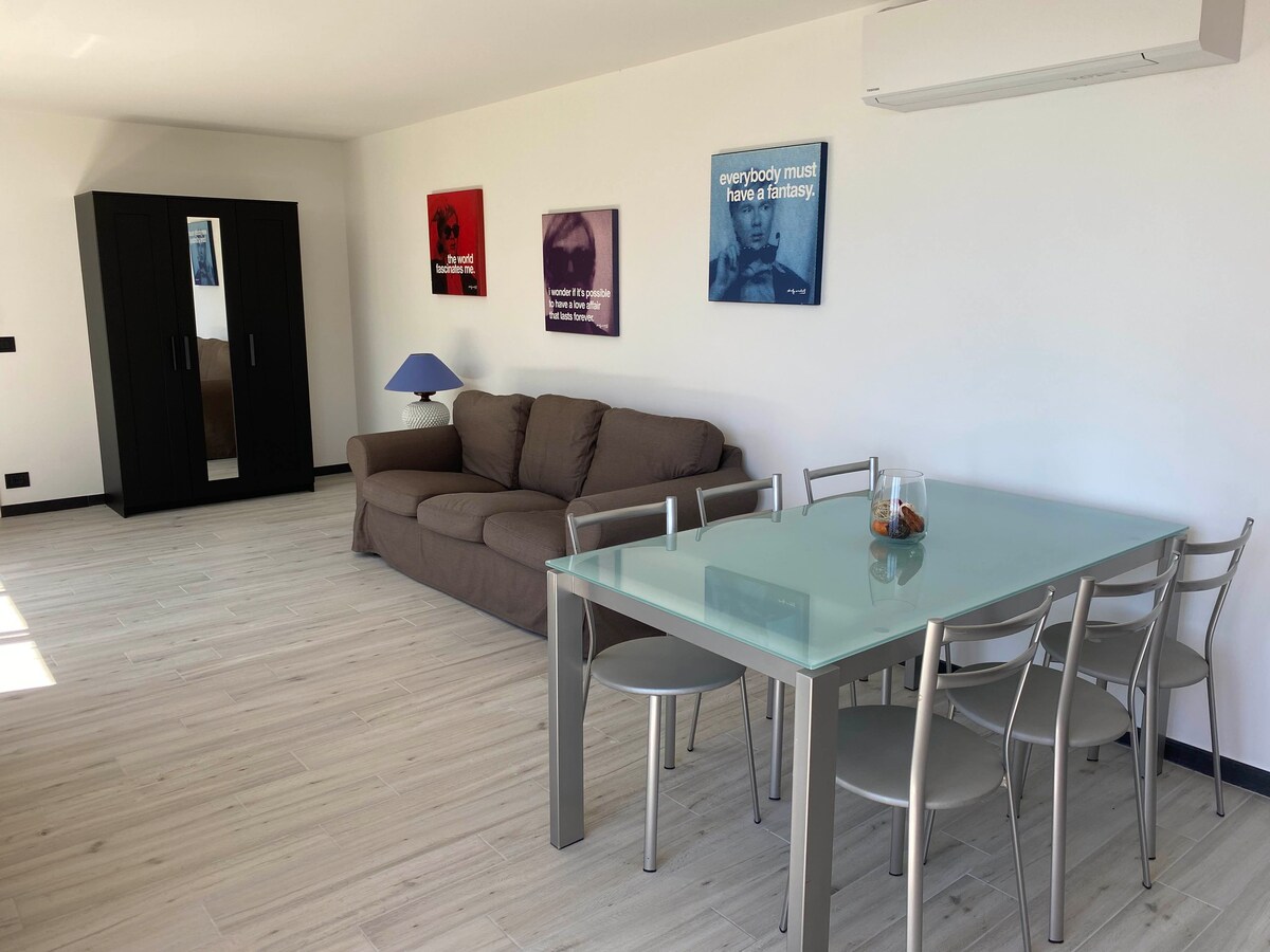 Nuevo apartamento frente al mar para 2 personas, jardín y piscina