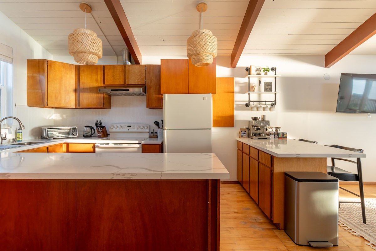 Deja atrás todas tus preocupaciones y recarga las pilas en este relajante y elegante espacio. Esta escapada a la isla cerca de Double Bluff Beach cuenta con 2 amplios dormitorios, 1 baño y fue completamente remodelada en 2022. Esta es una escapada para aquellos que desean recargar energías y relajarse mientras disfrutan de todo lo que la isla de Whidbey tiene para ofrecer. Disfruta de un café local mientras contemplas vistas de 180 grados de Useless Bay, el monte Rainier y pintorescas granjas. Camina hasta Deer Lagoon para observar las más de 170 especies de aves que residen allí.