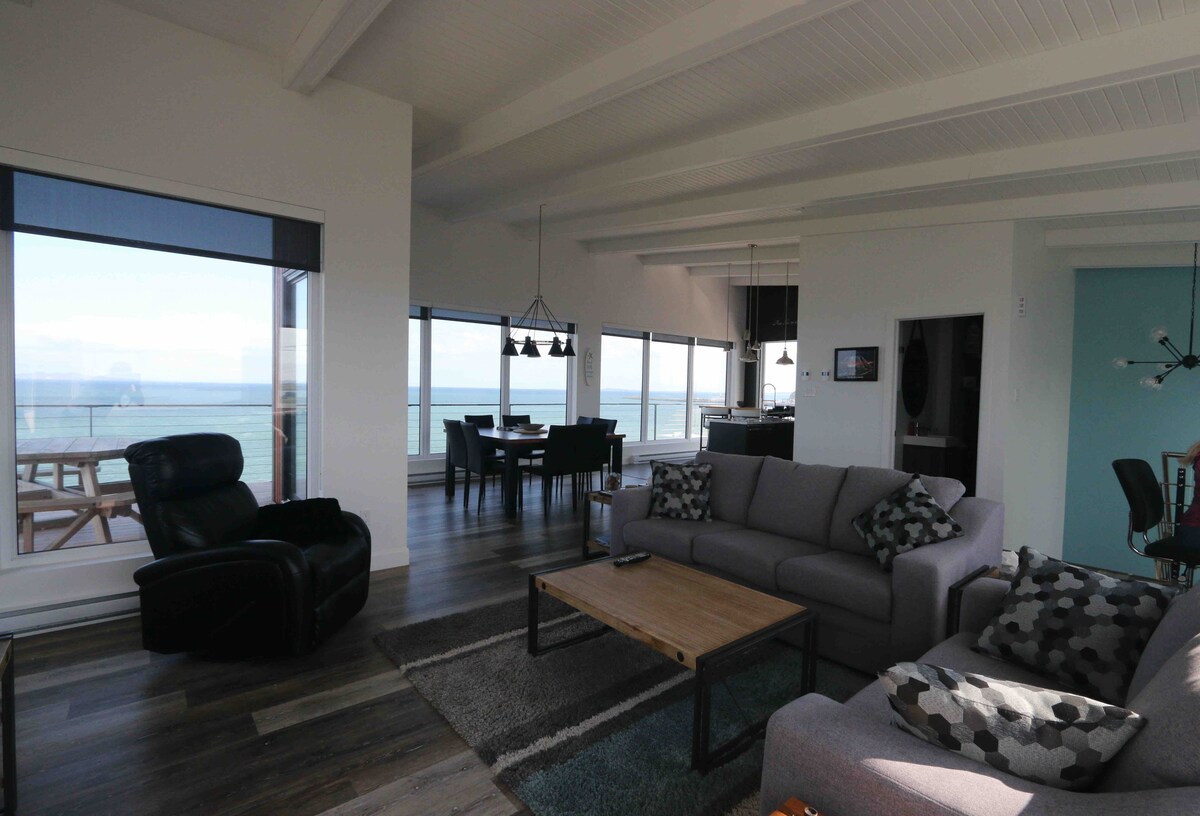 Disfrute del ambiente estilizado de este loft ultra espacioso, cerca del muelle del ferry, excursiones náuticas y llegadas de la pesca. Situado en el corazón de Cap-aux-Meules, toda su estancia se puede hacer a pie hacia restaurantes, tiendas, bares, panaderías, pescadería, carnicería, etc. Frente a un mirador con vistas panorámicas y un sendero junto al mar hasta la playa. Posibilidad de alquilar como espacio para eventos con alojamiento para 20 personas.