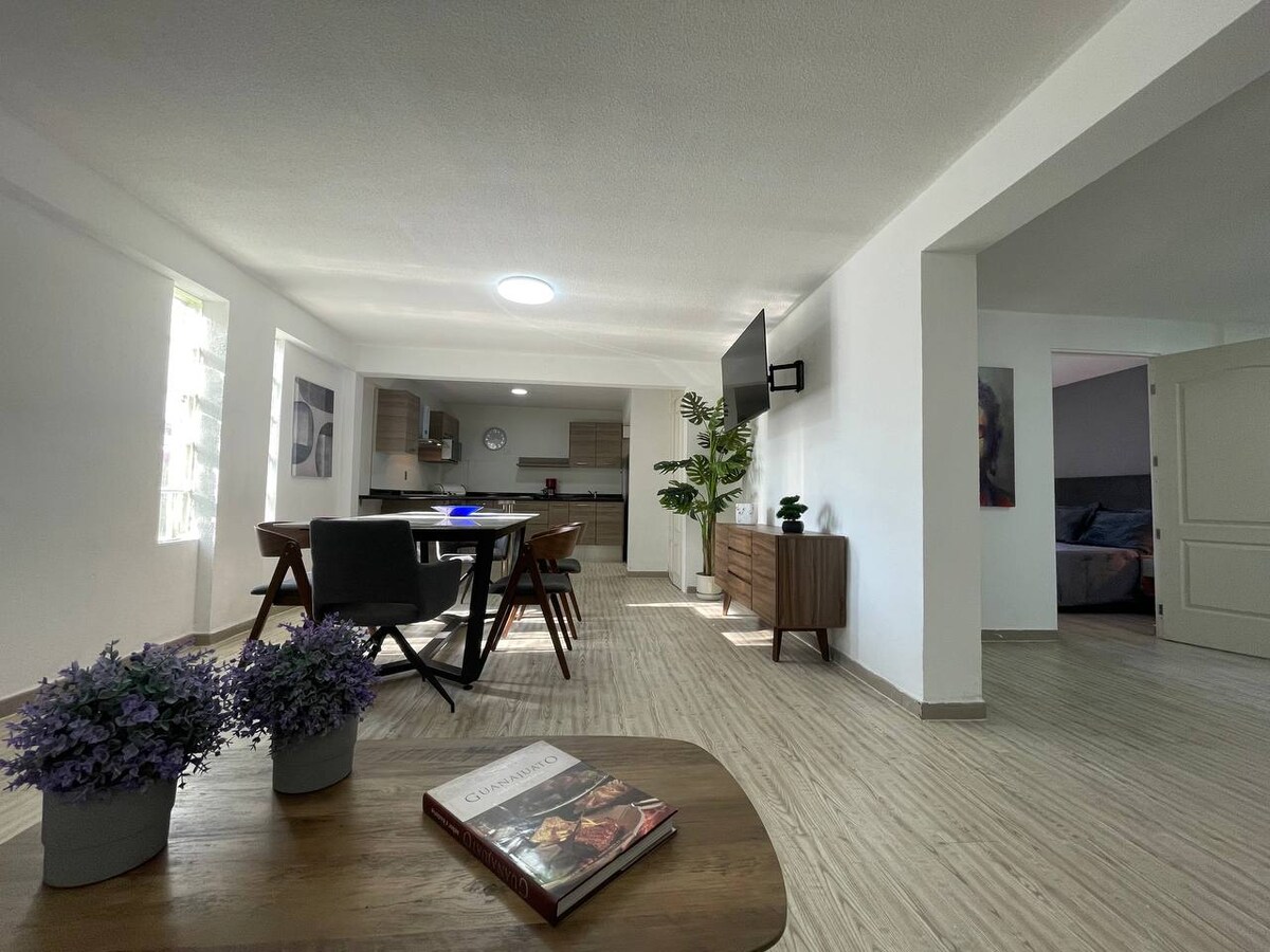 Disfruta la cercanía al Poliforum en nuestro departamento recién remodelado, ideal para descansar o trabajar con acceso a estacionamiento privado. Relájate en nuestras cómodas camas y disfruta de entretenimiento ilimitado con TV inteligente y alta velocidad de internet inalámbrico. Además, facilitamos tu estancia con facturación sencilla. Vive León desde una ubicación privilegiada, perfecta para tu próxima aventura o compromiso laboral.