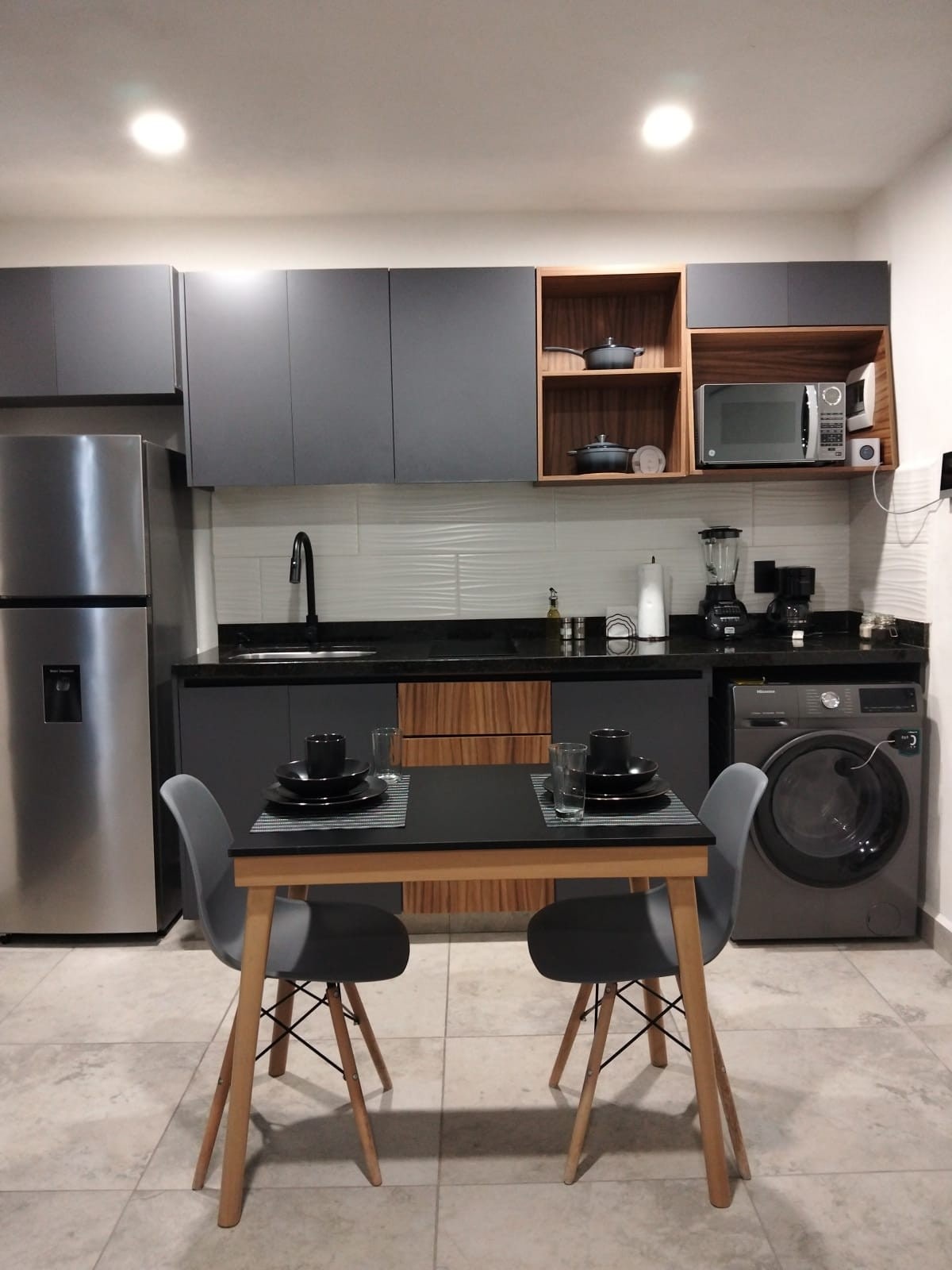departamento completo en la mejor zona de león, a solo 5 minutos de plaza mayor, departamento de lujo con servicio de lobby, estacionamiento privado, área de coworking y restaurante con servicio a habitaciones. Contamos con servicio de minibar dentro del departamento. acceso autónomo con cerradura inteligente. El gimnasio que esta dentro del condominio es administrado por un tercero, es un servicio que tiene un costo adicional. No contamos con servicio de facturación.