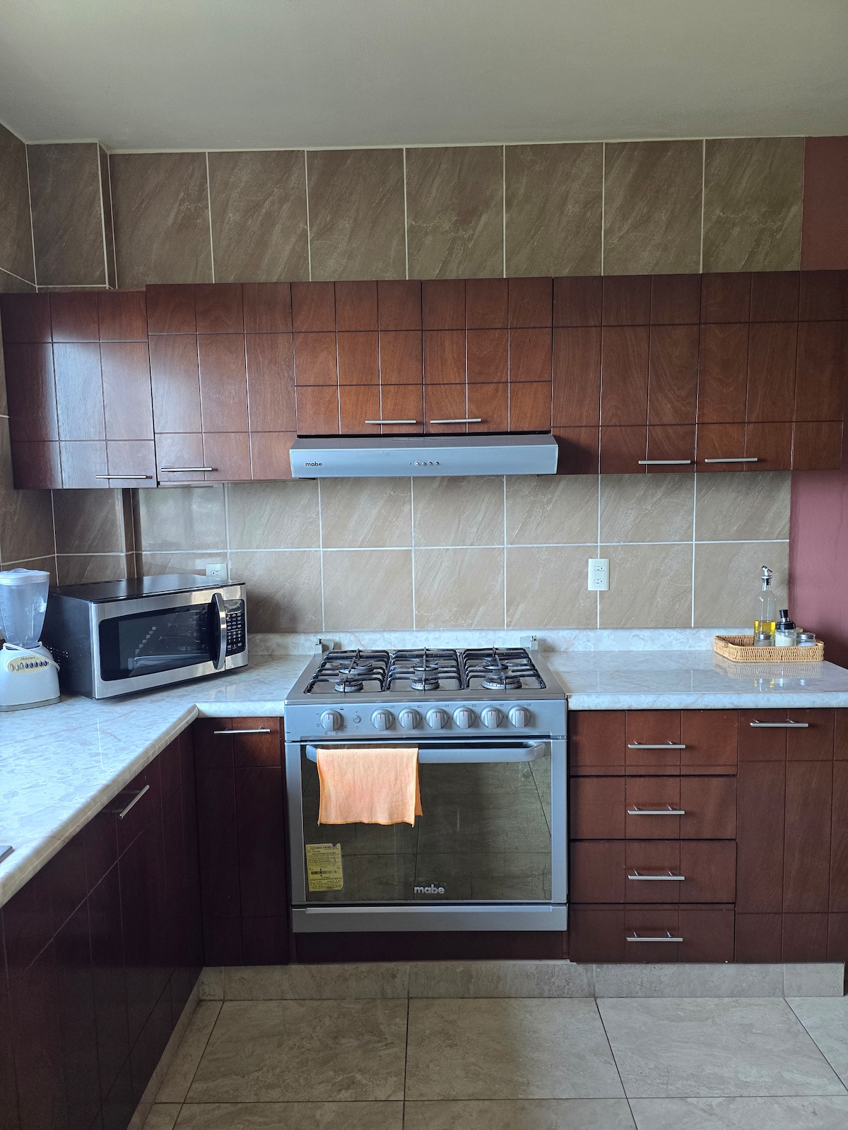 Departamento privado rediseñado en 2019 de 65 metros cuadrados repartidos en 3 habitaciones , 2 camas, localizado en zona con docenas de negocios de comida, 3 cafeterias, 5 farmacias, Bodega de Aurrera, parque de juegos extremos, 2 Oxxos, todo esto en un radio de 1500 metros. Edificio de 3 pisos, el departamento se encuentra en el primer piso, y yo ocupo el tercero. . Niños son bienvenidos. Una cama matrimonial, una pequena para nino y un sofa cama