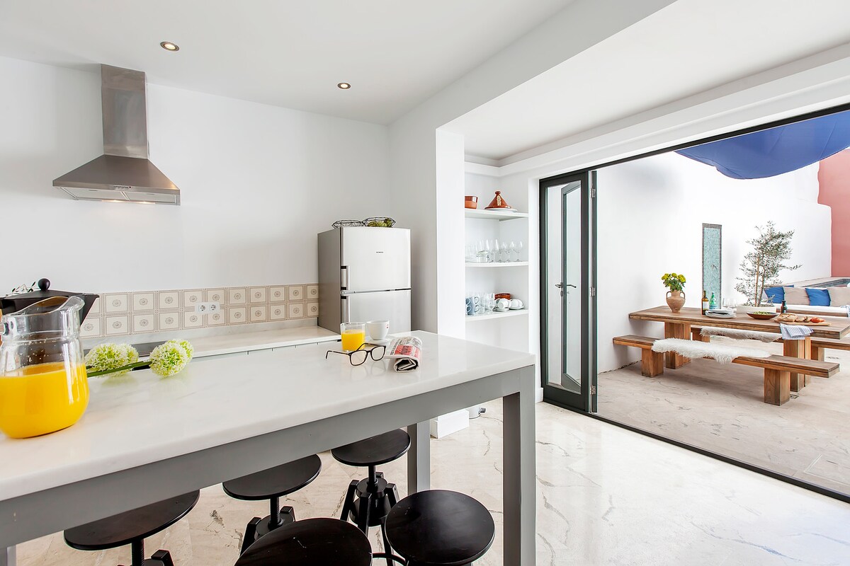 *Central Heating for the winter months included* Renovated townhouse, light and stylish, in the historic quarter of Pollenca town. Although situated in a quiet residential street, it's just a minute's walk from the famous Calvari steps and the main square. This home offers all the comforts such as air conditioning, central heating, fibre optic internet connection, smart TV's in the lounge and all bedrooms, a bluetooth soundbar, fast charging USB ports .Contemporary living in charming Pollenca.