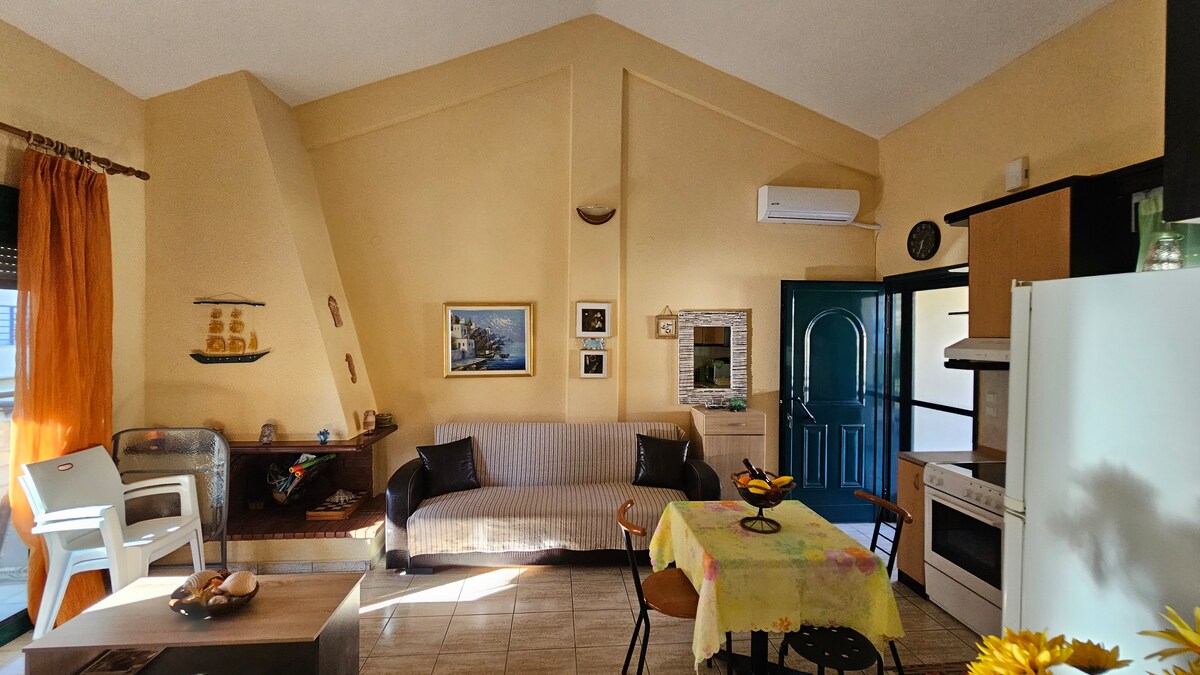 Cozy apartment in Pefkochori center, 300m from the beach. Walking distance from anything you might need (Bus stop, super market, coffee, restaurant, car/bike rental, bar etc) In the apartment you will find a coffee maker, water boiler, toaster, silverware, dishes, cooking utensils, blow dryer and wi-fi Sheets, towels and all other utensils, are sterilized and cleaned as per the ministry of health instructions, to keep everyone safe from COVID-19.