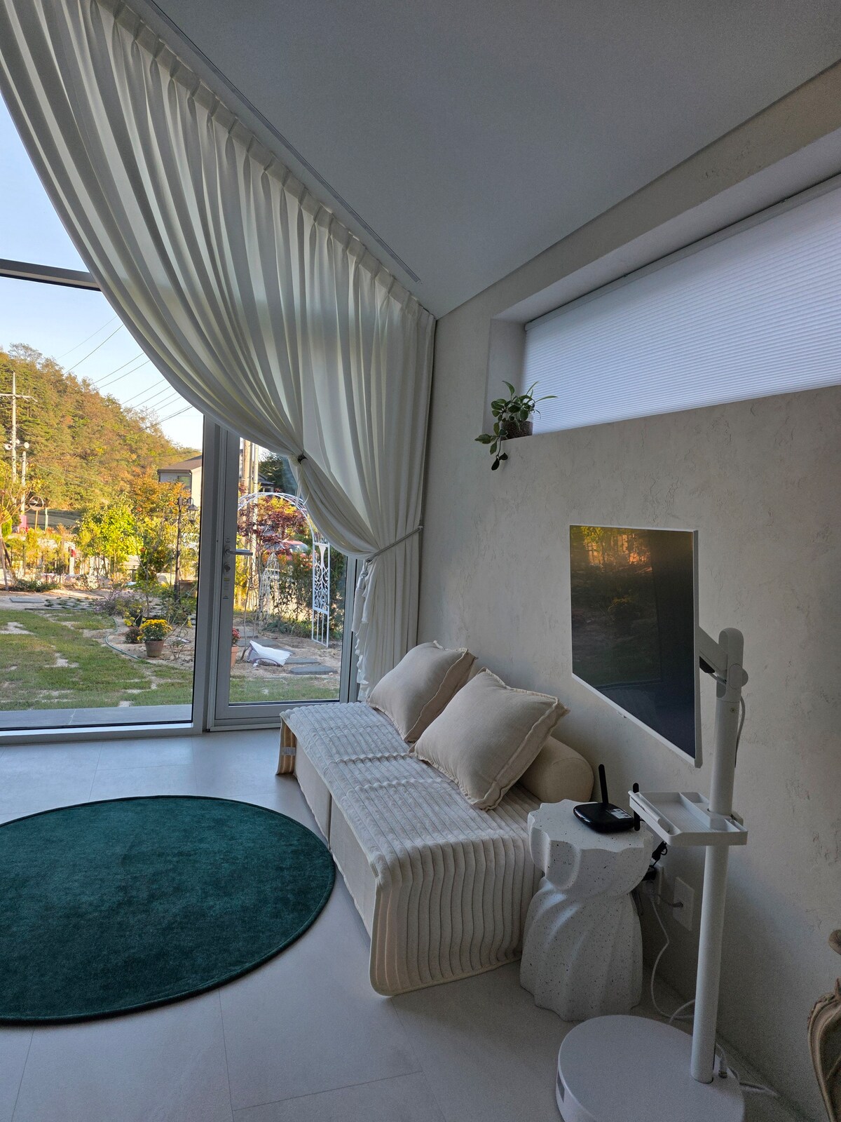 Es un alojamiento privado no presencial para un solo equipo, cómodo 25 pyeong en un gran terreno de 200 pyeong en auto desde el alojamiento. Es una entrada del pueblo junto a una carretera ancha, pero está a unos 50 metros de la casa privada, por lo que es un alojamiento privado no presencial que no perturba en absoluto la mirada y el ruido circundantes. Los dos dormitorios son una cama tamaño queen y dos tamaños súper individuales, por lo que tenemos un espacio donde 4 personas pueden descansar cómodamente. Si hay personas adicionales, prepararemos ropa de cama en la sala de estar. Puedes disfrutar de las películas de Netflix en un televisor grande de 8k 85 pulgadas. La distancia de la playa también está a 3 minutos en auto de Surf Beach. Después de estacionar, hay 20 escaleras bajas y bonitas en el jardín. Si no te sientes a gusto, ponte en contacto con él durante la reservación.