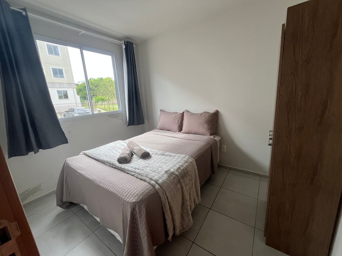 Relaxe com toda a família nesta acomodação tranquila. piscina para adultos e infantil, churrasqueira, 2 quartos com 2 camas de casal 2 guarda roupas, 1 banheiro, sala e cozinha conjugada, sofá retráti, tv smart, wi-fi, geladeira, fogão à gás, fogão de indução, armário e pia interna, tanque, microondas, utensílios ( talheres, pratos , chaleira eletrica, panelas, Airfryer, secador, ferro de passar, 06 cadeiras, 5 mesas de PVC e 1 mesa de madeira,2 espreguiçadeiras.