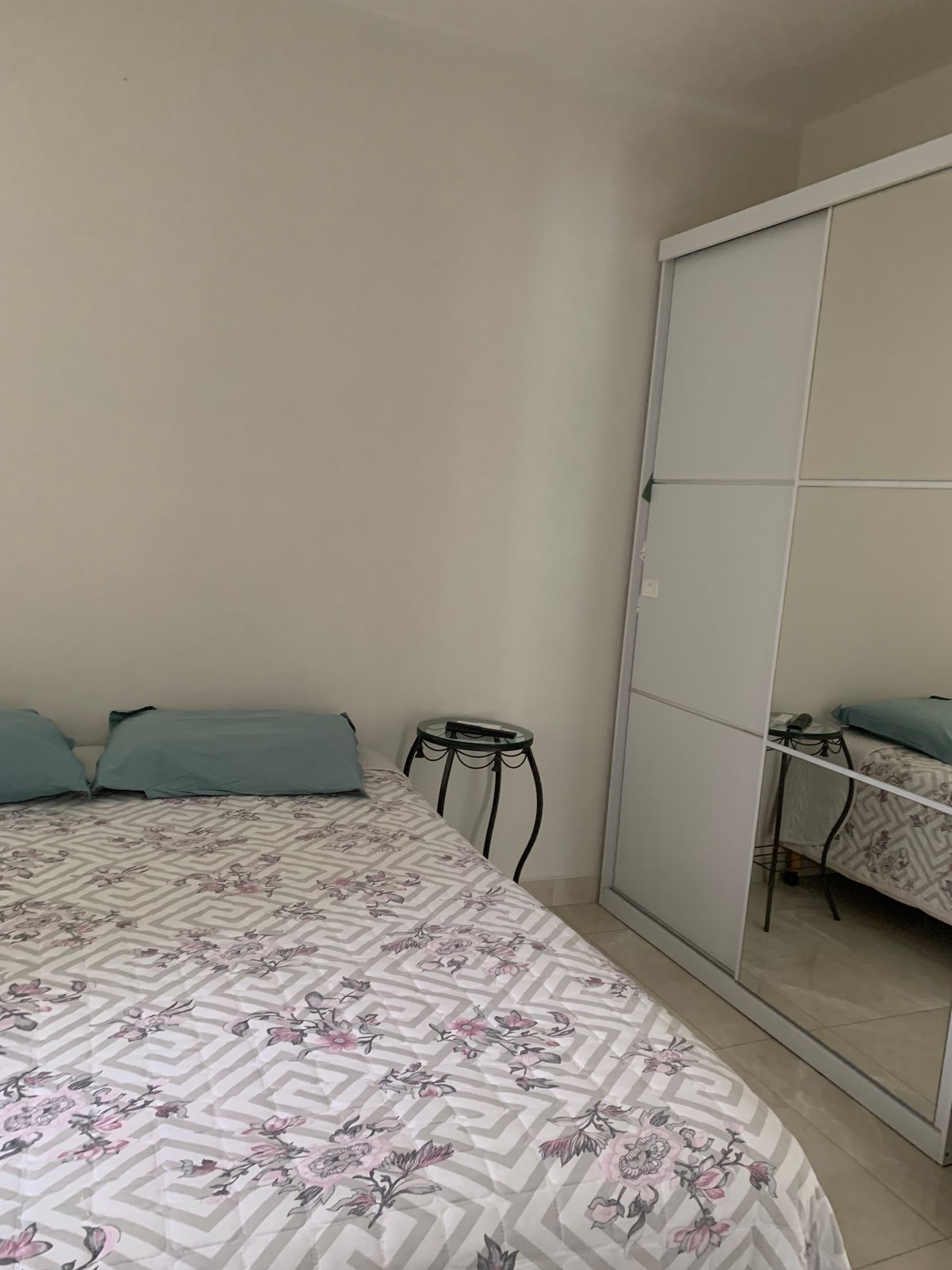 Hola, Traveler. Nuestra casa está atrás pero es súper acogedora, en la otra casa en el patio trasero viven solo 2 personas. Estamos ubicados en el centro de Matinhos, en la calle de la Iglesia Principal y la Plaza Central de Matinhos. Cerca de la casa encontrarás un mercado, panaderías, cafés y puedes ir a estos lugares a pie. La playa está a 900 metros de nuestro espacio y el paseo marítimo con una amplia variedad de tiendas para pasear está a pocos metros. NO SE PROPORCIONAN sábanas ni toallas de baño.