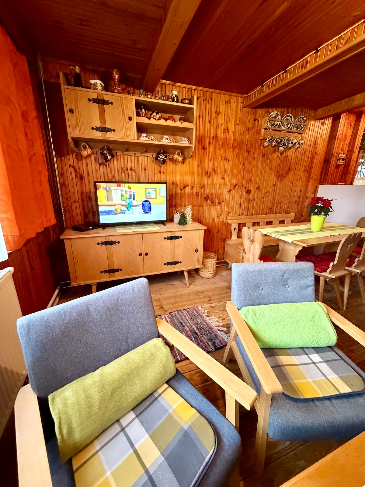 The hut is located at the edge of Stará Lesná. It is surrounded by a garden, and is ideal for kids or pets. There is living room, kitchen and bathroom at the groundfloor. First floor offers two bedrooms, each with 3 beds.