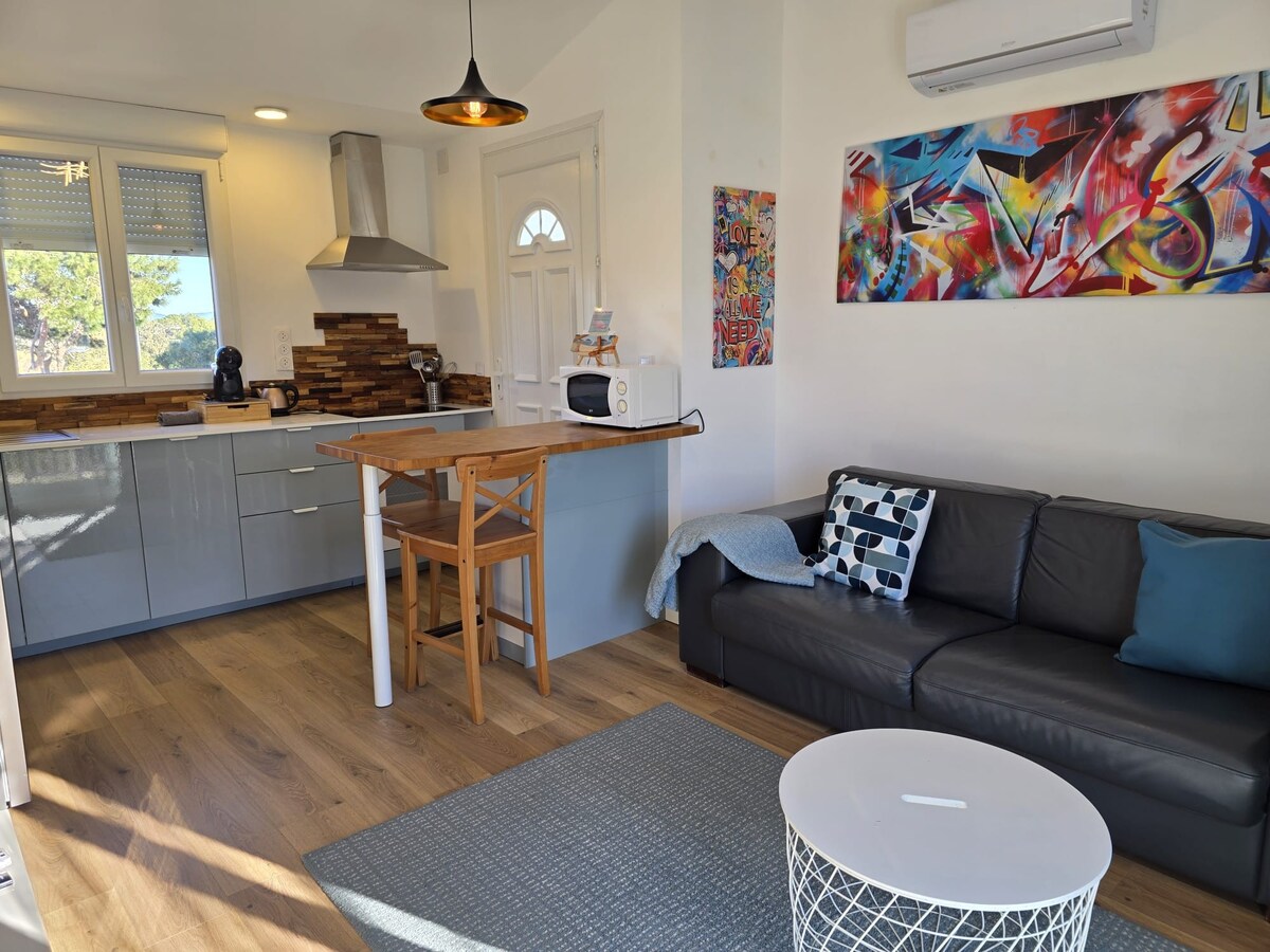Apartamento nuevo, con aire acondicionado, idealmente situado en la península de Giens, a 500 metros a pie de las playas de la Badine y de la Almanarre. Situado en el primer piso, consta de un dormitorio, un baño y un aseo separados, una cocina abierta a una luminosa sala de estar y una terraza para disfrutar del sol. Este apartamento está decorado en un estilo contemporáneo. Armonía entre confort, diseño y serenidad, para una estadía relajante y natural junto al mar. 🚗 Estacionamiento gratuito en la propiedad