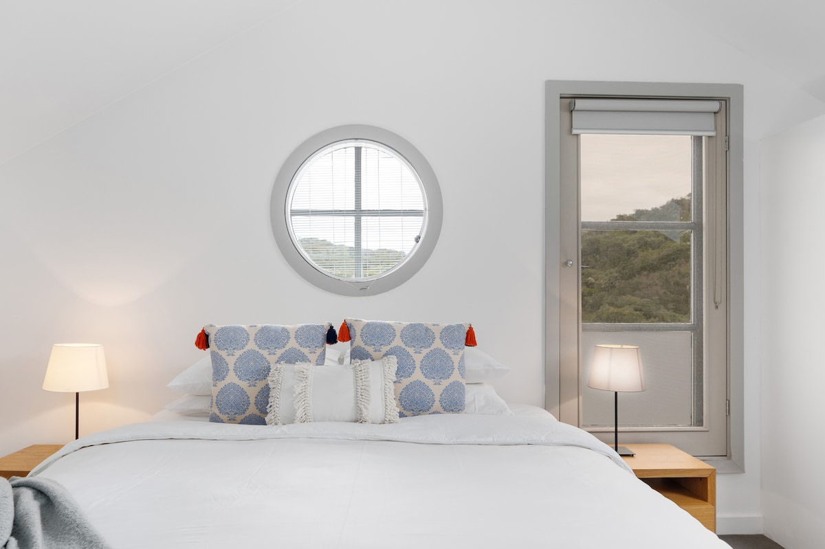 Disfruta de un apartamento loft tipo estudio de dos pisos de lujo privado que está a poca distancia a pie de la playa (700 metros) y a solo 4 minutos en coche (1,6 km) de un supermercado, licorería, restaurantes, bar de vinos, farmacia, gimnasio y el campo de golf Torquay Sands. El loft es perfecto para solteros y parejas que buscan una escapada relajante a la playa. El espacio recién renovado tiene un dormitorio grande con cama tamaño queen, baño privado, aire acondicionado/calefacción, televisión inteligente y su propio balcón privado.