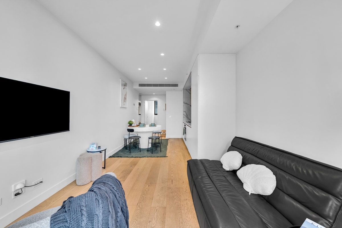 Modern industrial with a vintage twist. Combining sleek, urban design with rustic and retro elements. Think New York loft meets eclectic collector’s retreat—polished metals, warm wood tones, and statement décor that tell a story. Designed for those who love character, creativity, and a touch of old-world charm in a contemporary setting. Set on vibrant Greville Street! Walk to everything! 1-min walk to the train, trams at your doorstep. Chapel St, St Kilda, and the CBD all within easy reach.