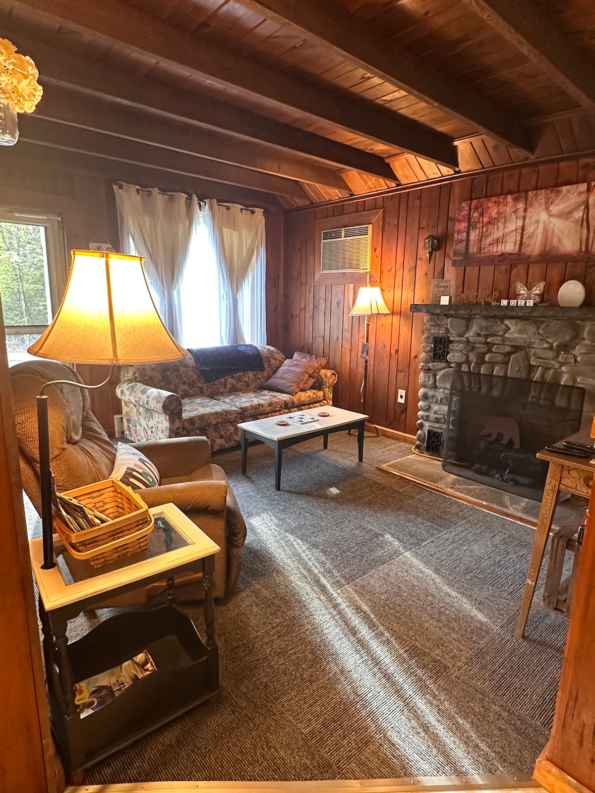 We welcome people from all walks of life to visit us and enjoy this beautiful property and all that the Poconos has to offer. Set back in the woodlands, the cabin overlooks a designated class A wild trout creek that flows through a small ravine of indigenous flora and old growth trees. The cabins’ large deck offers a tree house view of it all! Our guests enjoy this cozy cabin and its’ long list of amenities, including basic spices and cooking essentials.