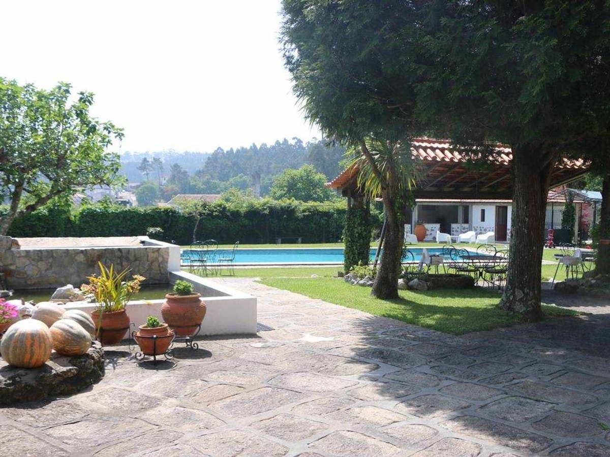Petit Palace, ubicado en 2,5 hect, en una zona vallada y tranquila. Alquiler de primera calidad. Aire acondicionado e Internet. 16 personas hasta 24 personas. Uso exclusivo para tu grupo. Ideal para grupos grandes/familias. La mansión con 8 dormitorios amplios y acogedores. El segundo edificio, entre la casa principal y la piscina, son 4 pisos mezanine dúplex, todas con baño para 2 personas. A 15 km de Guimarães y Amarante. A 25 Kms de Braga y 45 Kms de Oporto. Fácil acceso a la A41, A42, A11.