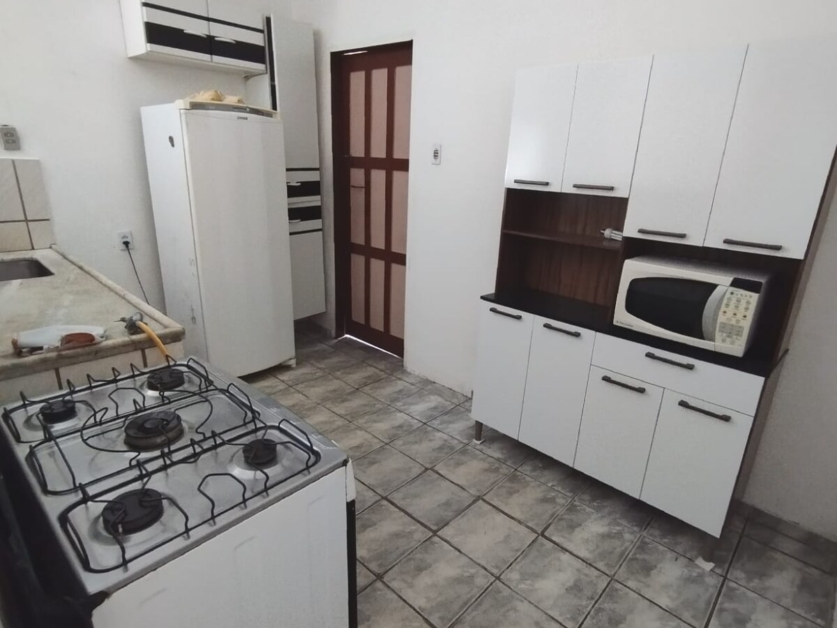 Alojamiento amplio y completo en una comunidad cerrada, con seguridad las 24 horas y conserje. Tiene capacidad para un máximo de ocho personas y puede ser menor. Ambiente tranquilo y familiar, ideal para una noche de descanso reparador después de un día de turismo. Está a pocos minutos de las mejores playas de Arraial D'ajuda (Mucugê, Parracho y Pitinga). Cerca del centro y la calle Mucugê (1500 metros). Para mayor comodidad, no cobramos ninguna tarifa de limpieza por adelantado. Podrás contratarla si sientes la necesidad en la recepción.