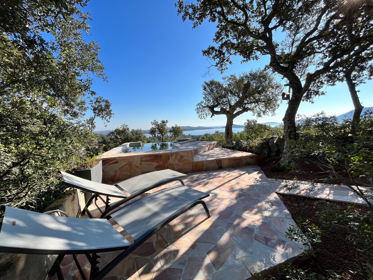 “Aquí no solo entregamos llaves, creamos recuerdos”. Lo que hace que su estadía sea realmente diferente es la atención prestada a su comodidad acompañada de un servicio personalizado y discreto. Dentro de la Villa Kallinera, esta planta baja (Ciardinu) ofrece un entorno natural bajo los robles y su vista al mar. Sin vecinos, entre sus 2 terrazas y su mini-piscina privada de agua salada, infinita (10 m²), podrá disfrutar de las parrilladas frente a la montaña y del aperitivo junto al mar.